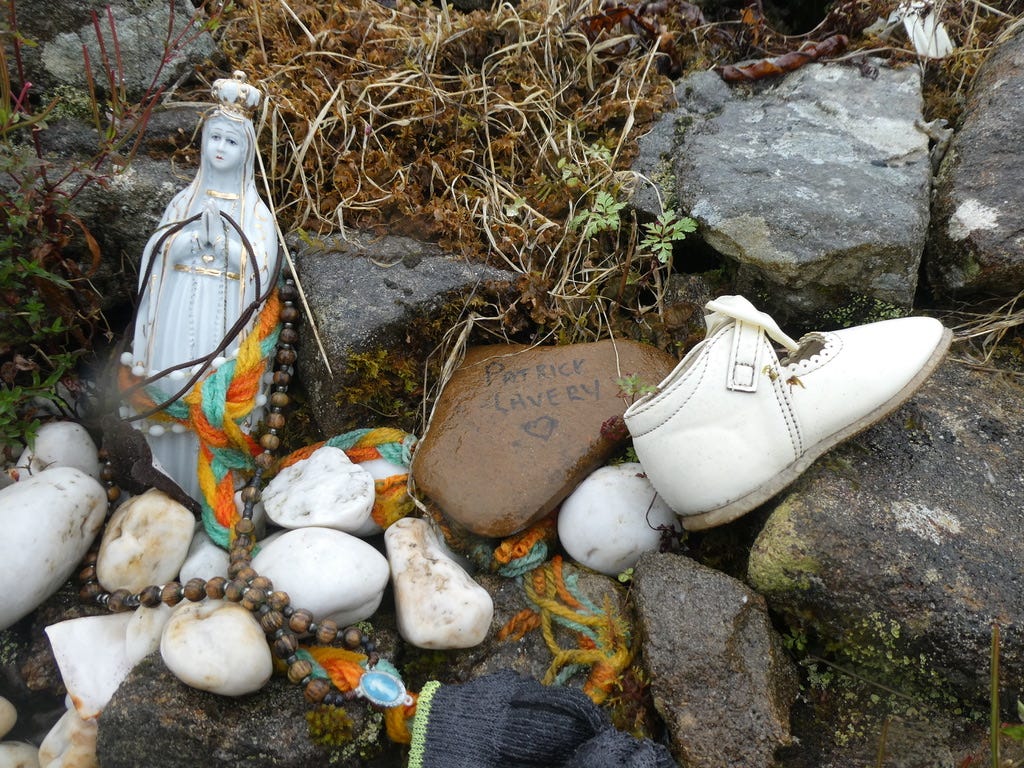Does anybody come here? You can see that they do, even if not in large numbers, for the offerings, or some of them, are still fresh. You’ll find necklaces, watch chains, socks, candles, coins, statues, rosaries, and - most moving of all - a small child’s shoe with a story that cannot be known by the casual visitor: