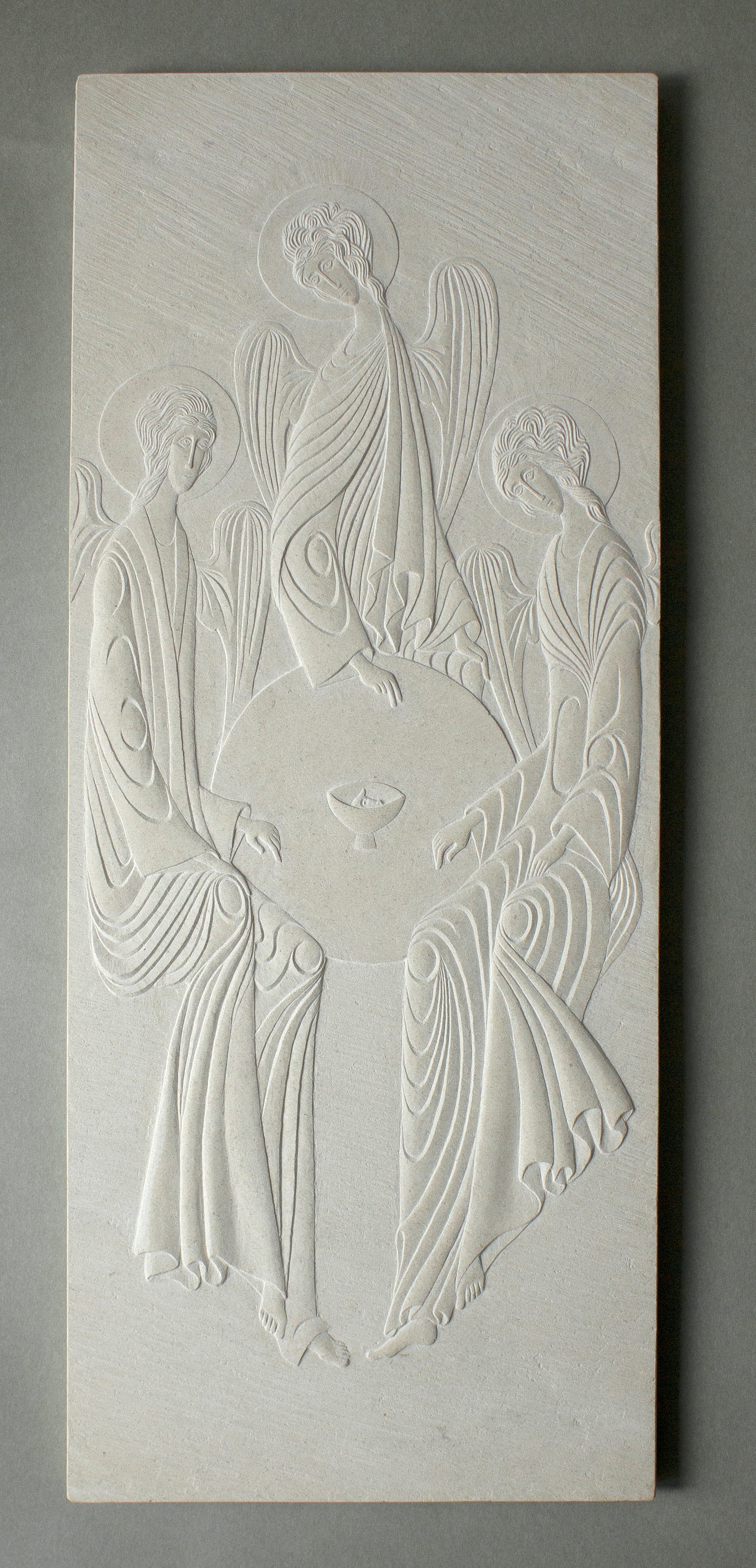 My most recent carving work, meanwhile, is springing from a desire to create iconographic work inspired by the vast wealth of Christian iconography. Two recent carvings I finished earlier this year, for example, were a response to Andrei Rublev's works The Trinity and Christ as Saviour. Rublev's work, particularly the Trinity has entranced many, myself included, and it has shaped my Christianity so far. Something that beautiful, I think, can't be made by Man alone.
