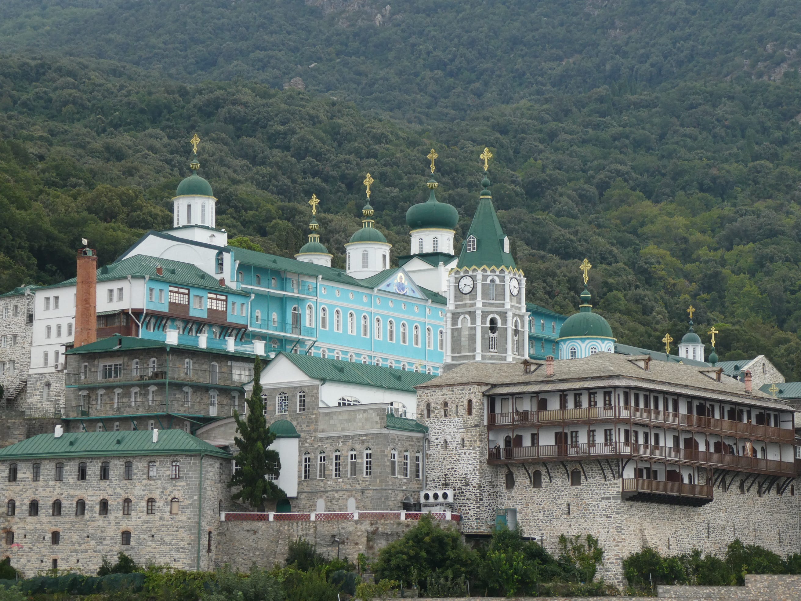 This is Mount Athos, the spiritual heart of the Eastern Orthodox church, and, I would say, of the entire Christian faith. There is nobody on this peninsula except monks, or those who work for them or are visiting them, and this has been true for over a thousand years. Twenty-one monasteries, along with countless sketes (smaller monasteries), cells, houses and caves are home to an estimated 1500 monks, though probably the exact number cannot be counted. For over a millennium, the Divine Liturgy has been sung here daily, hundreds of times in hundreds of churches, from the golden and cavernous to the tiny and poor.