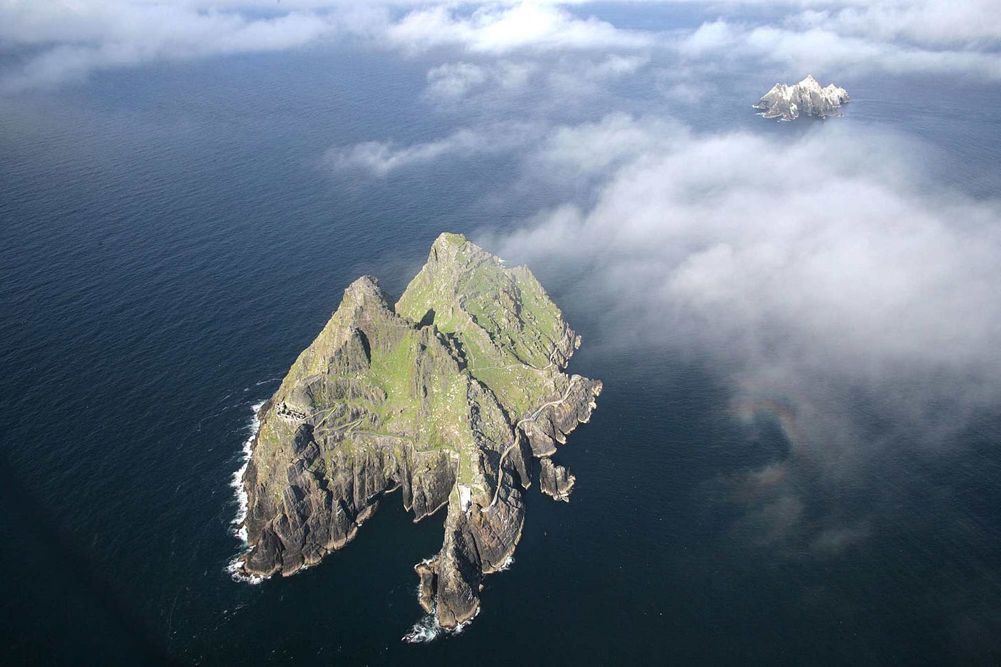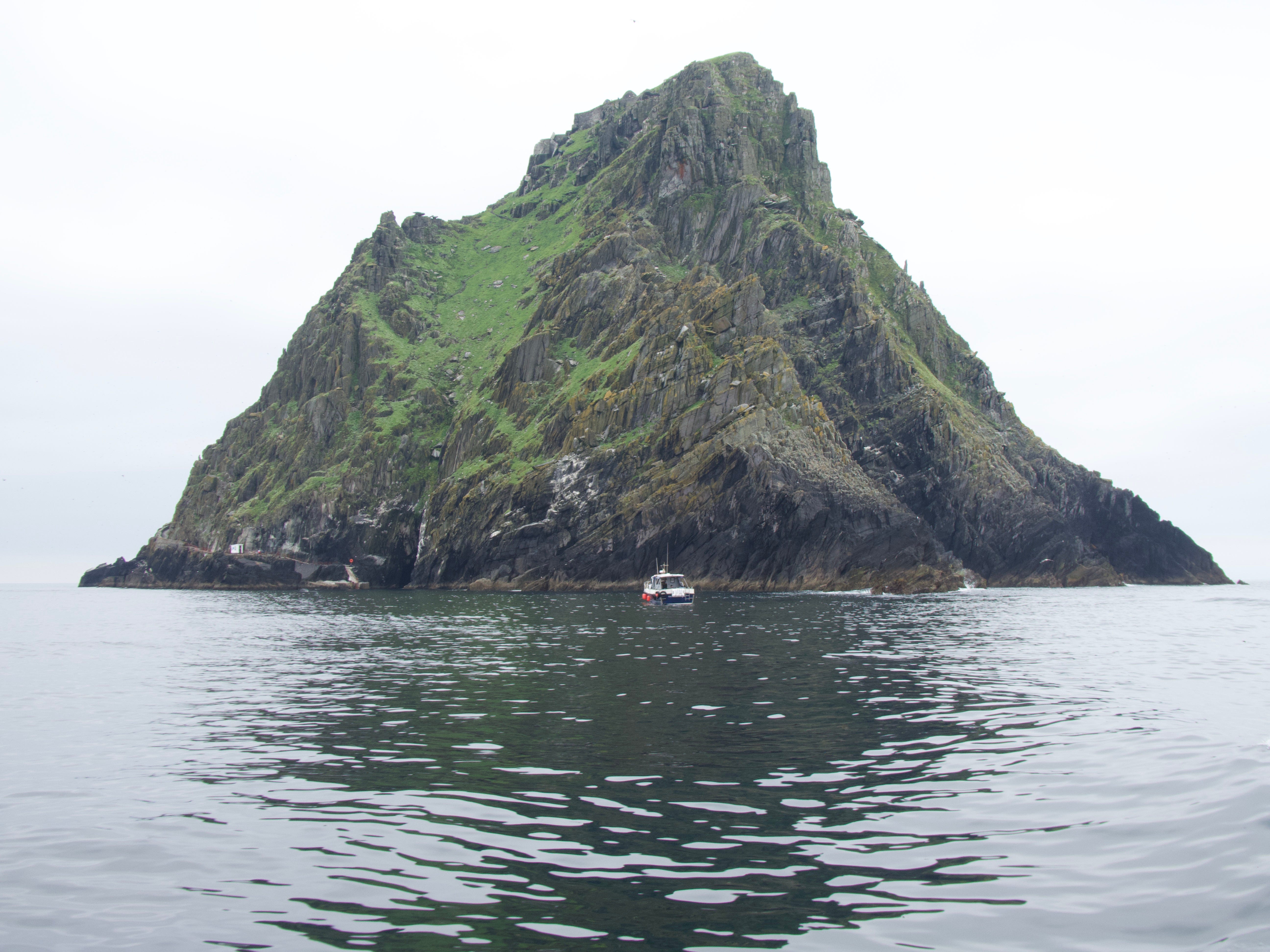 For a sense of the wild remoteness of the Skellig, which in the winter is dashed by furious Atlantic storms, this is what it looks like from the air: