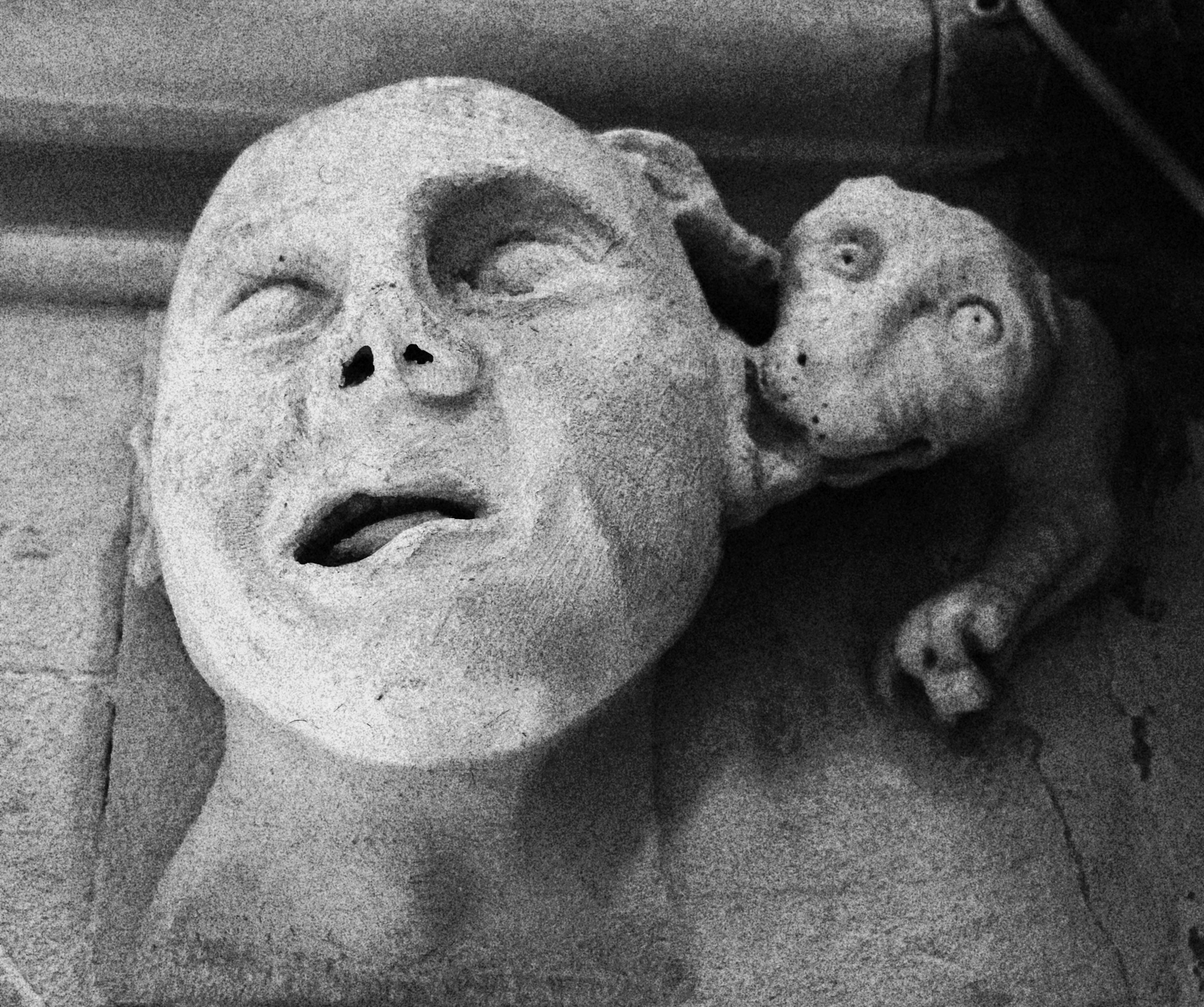 A much more interesting talking point, to my mind, is the fantastic selection of gargoyley faces which are carved into the stonework all around the dome of the church:
