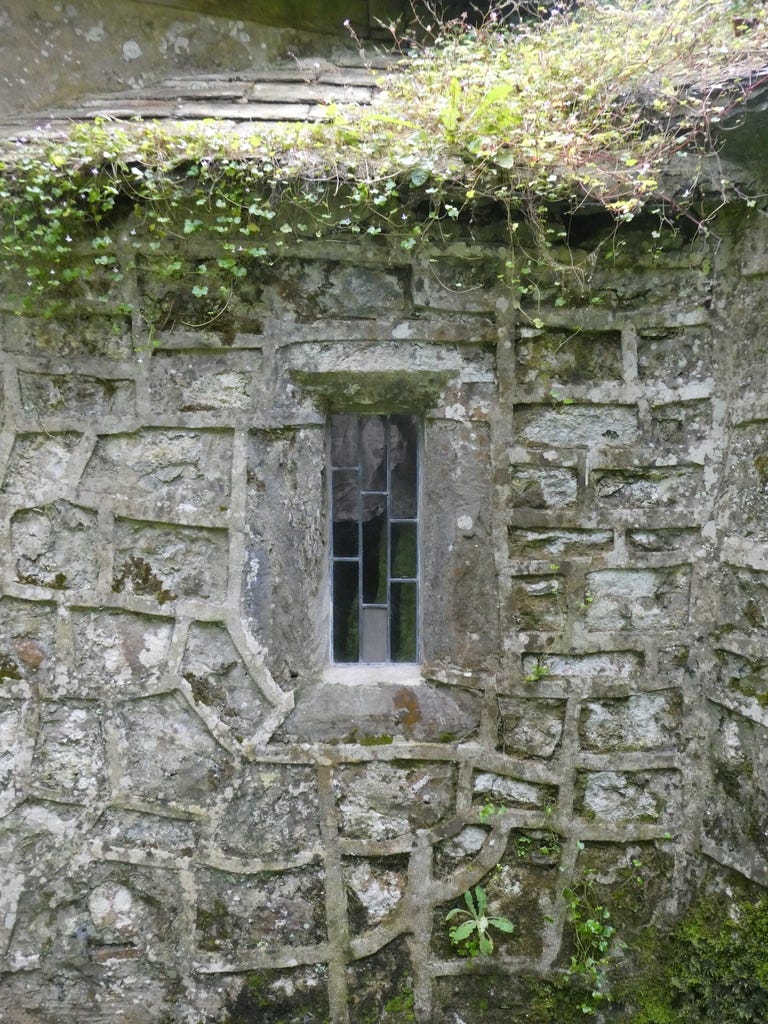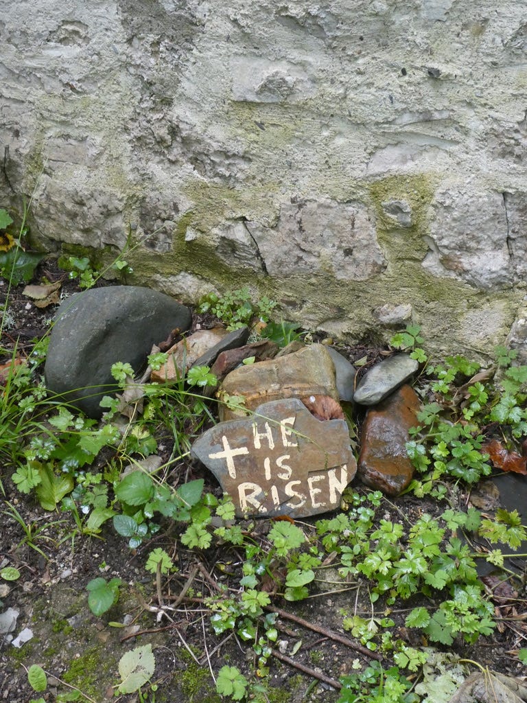 The site as a whole is equally silent, and seems unvisited. I’d say that people come here quietly though, as we did, and maybe depart in stillness too. It’s that kind of place. Some of them even leave little signs of their passing, if you know where to look. Walk around the back of the church, for instance, and you will find a secret message hidden among the stones and the creeping buttercup:
