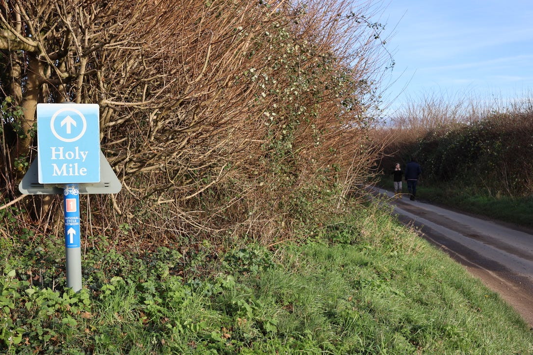 The last mile of the pilgrimage was particularly important. As pilgrims approached the holy site, they were expected to display particular devotion. They would stop at a chapel one mile from the village, and here they would take off their shoes, and walk the last mile barefoot, along this path: