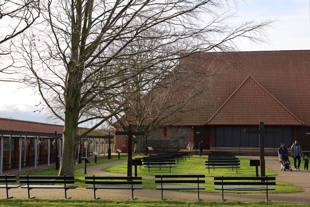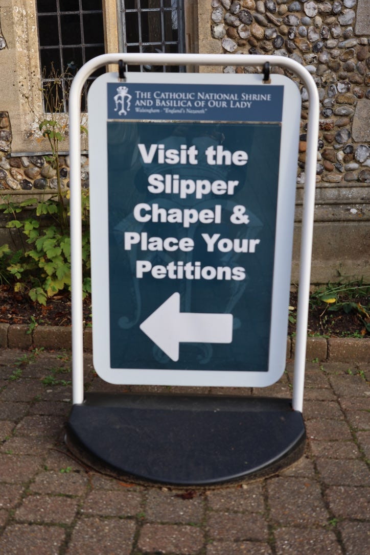 It all reminds me of somewhere like Knock, in the West of Ireland, another vast Marian shrine and pilgrimage site, in that case with its own attached airport so that pilgrims can fly in for their veneration. The Catholic Church is good at operating these enormous mega-pilgrimage sites. At Walsingham, coachloads of people are disgorged at the Slipper Chapel on designated pilgrimage days each year, and sometimes, judging from the website, the place looks like a Christian Glastonbury.