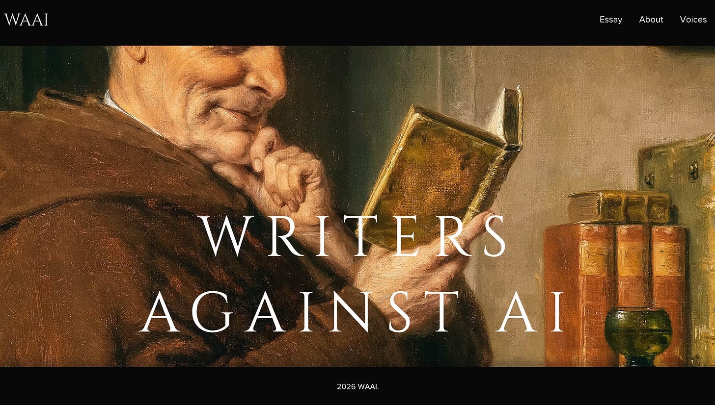 What I didn’t expect when I spoke to M&T was how much enthusiasm they would show for my Writers Against AI campaign. Not only have they changed their masthead to incorporate the logo, but they have created an entire website dedicated to the campaign. It features my essay, and a selection of other writers who are already resisting AI in their work. Have a browse - you can find it here - and do spread the word. It is a great landing site for AI refusers. Maybe you have some other names to suggest to them too.