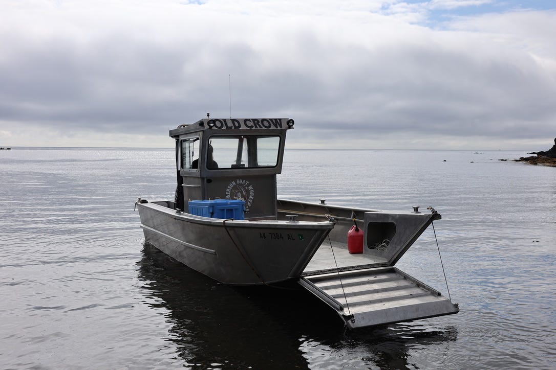 As we hum across the water on the skiff, back to Kodiak, a gull pulls alongside us, and shadows the boat for a while, before turning away and heading back out to sea. Welcomed by porpoises, waved off by gulls. Farewell, brother bird. Perhaps we will return.