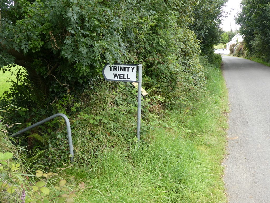 Trinity Well sits quietly down the end of this leafy boreen, which itself is just across the lane from the attractive Holy Trinity Church. The church has apparently been restored over the years from a formerly run-down state. The happy news this week is that the same thing happened to the well. Only this time, the restorers did a proper job.