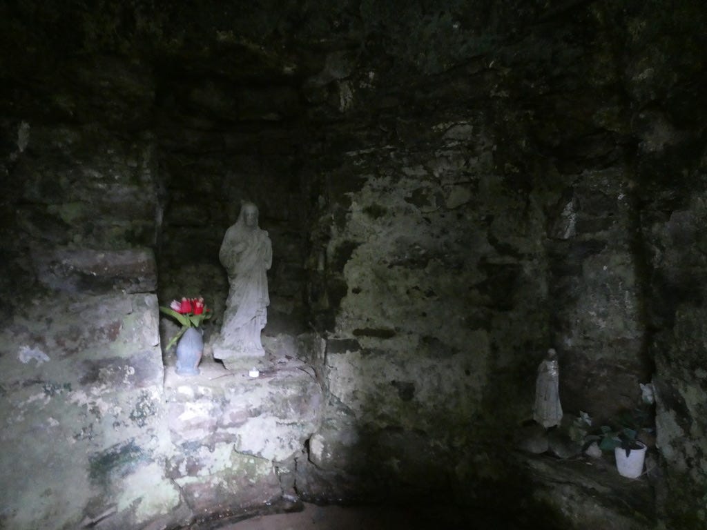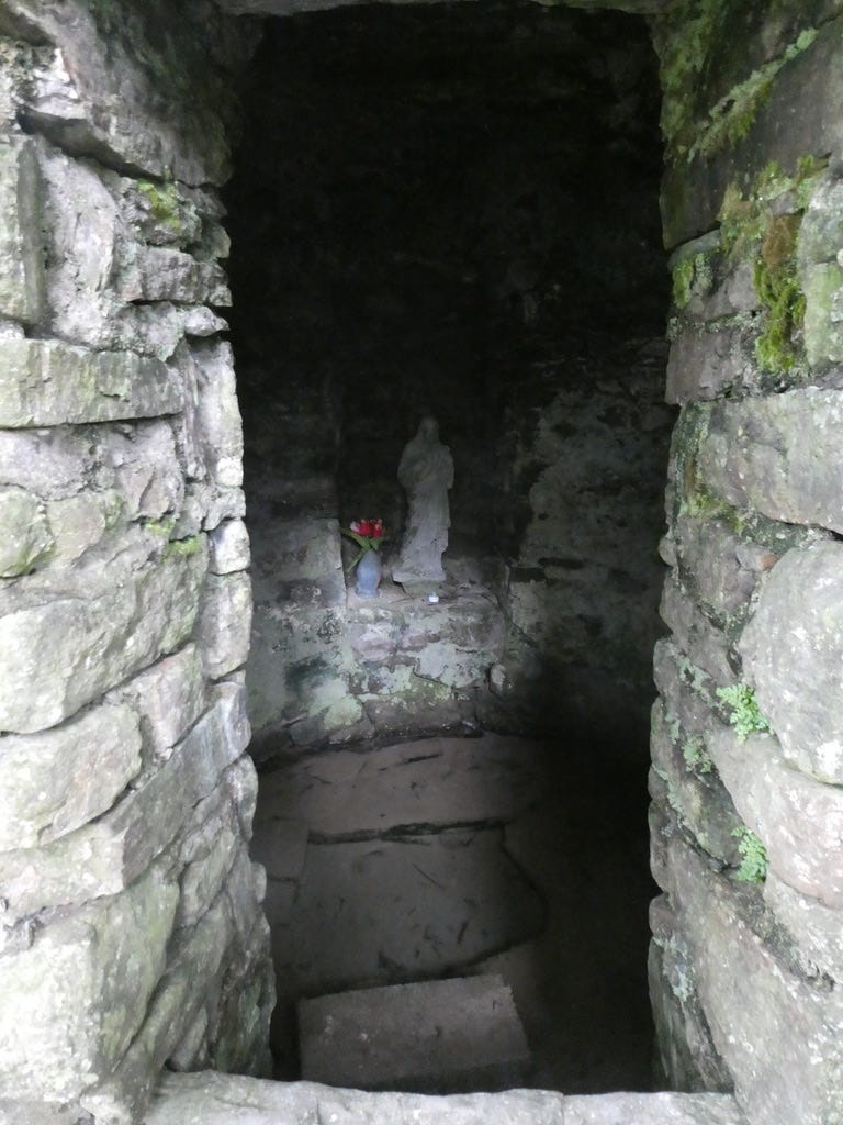 There’s something ghostly about His presence in there, floating above the water in that damp clochán. It’s quite a contrast to the trim, verdant scene outside. But then, holy wells are often like this. Beneath the surface, there is always something going on that you don’t expect. You can’t prepare for it. You just have to arrive, and see what you are offered.